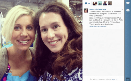 That was the case between myself and Etsy seller Elizabeth of the Vintage Mistress. We connected via social media three years ago and ever since, have had a catch-up call twice a year and numerous emails about the industry and our personal lives.