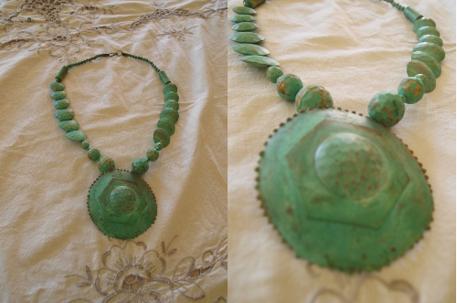 If I could bet on it, this very ethnic-influenced piece is a costume-jewelry piece that my grandmother bought new in Lancaster to wear with a particular outfit. She was definitely a wardrobe planner!