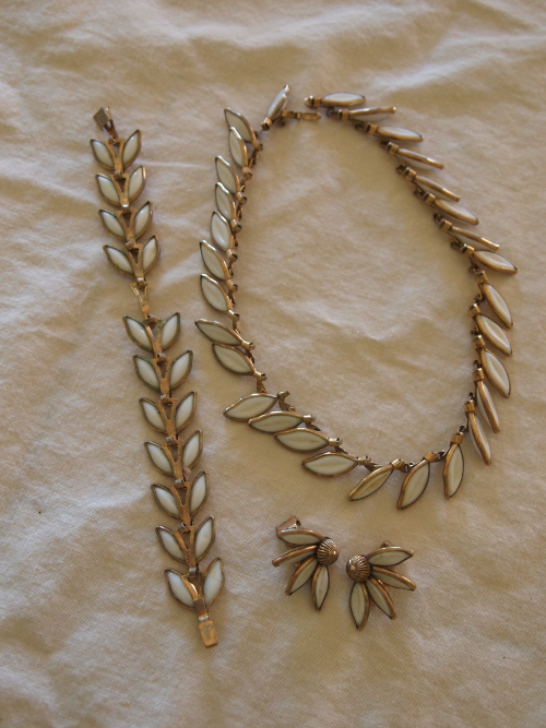 Matching “leaf” choker, bracelet and clip-on earrings.