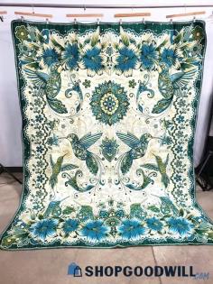 Vintage Bed Spread Green & Blue on Ivory Floral HummingbirdMin Bid: $5Current Bid: $81Remaining Time: 9m 2s Bids: 23