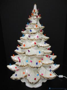 Vintage Iridescent White Ceramic Mold Gold Trim Table Top Christmas Tree LightMin Bid: $14.99Current Bid: $106Remaining Time: 20h 59m Bids: 21