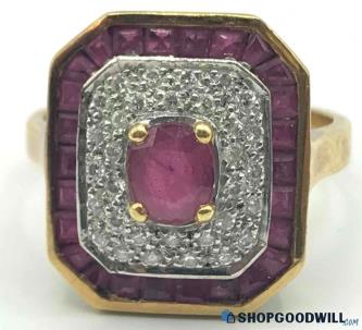 18k Yellow Gold Vintage Pave Diamond 6x4mm Oval Ruby Baguette Halo Ring Size 6.5Min Bid: $9.99Current Bid: $226Remaining Time: 1d 22h Bids: 33