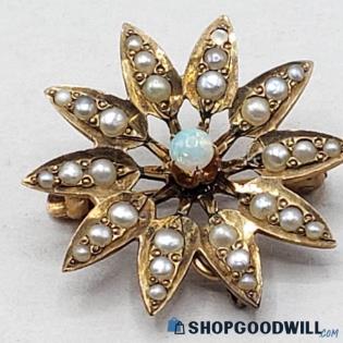 Vintage 10k Yellow Gold Brooch Pin w Opal and Pearl AccentMin Bid: $14.99Current Bid: $102Remaining Time: 1d 19h Bids: 17