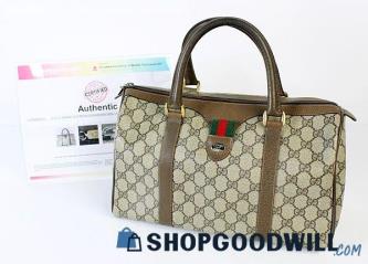 Gucci Vintage Khaki GG Monogram Canvas & Brown Leather Boston Bag Satchel w/COAMin Bid: $7.99Current Bid: $301.81Remaining Time: 3d Bids: 28