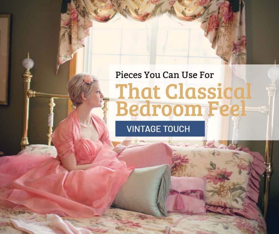 When it comes to a classic bedroom feel, old lamps add a lot of the drama. Depending on your personal preference, you can opt with a floor lamp for corners or even table lamps for your bedside tables. There are a lot of shapes like Drum Shades, Pagoda Shades, and even Box Shades that can add a touch of drama and flair to your bedroom. Such pieces help to tie in the overall era that you’re trying to pull.