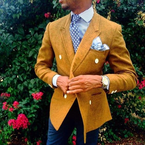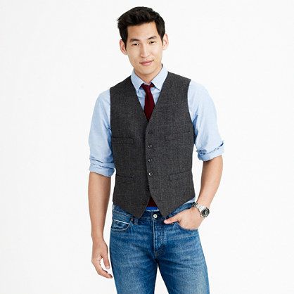 Don’t be afraid to mix the old with the new! Did you find a dashing Windowpane Button-Up Vest? Pair it with a simple dress shirt underneath, a satin tie to incorporate an alluring silky texture, and a casual pair of jeans. Balance your old-school threads with modern pieces for a unique look. Go for rich fabrics, like wool and tweed.