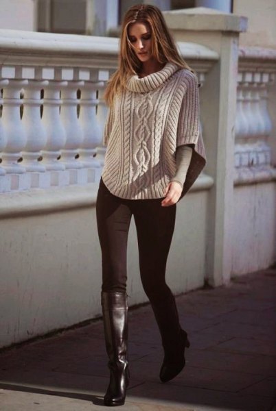 Instead of grabbing your usual go-to jacket off of the coat hanger, opt for a cozy capelet instead. Choose one that hangs to about your waist, and also covers your arms up to your elbows. You’ll keep your core warm, while looking super stylish to boot! For an easy, classy outfit pair a neutral-toned cable-knit capelet with black pants and boots. You’ll look runway ready!