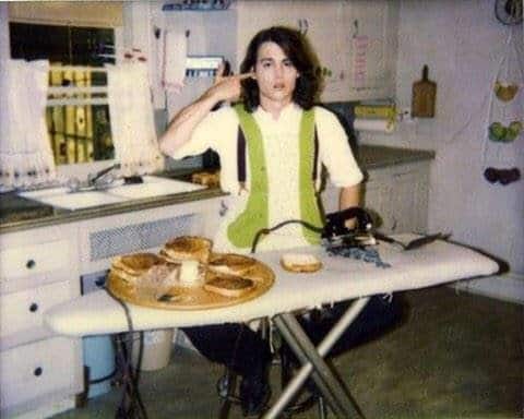 Johnny Depp making grilled cheese sandwiches with an iron – 1990’s