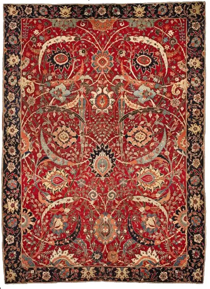 “sickle-leaf, vine scroll and palmette ‘vase’-technique carpet,”