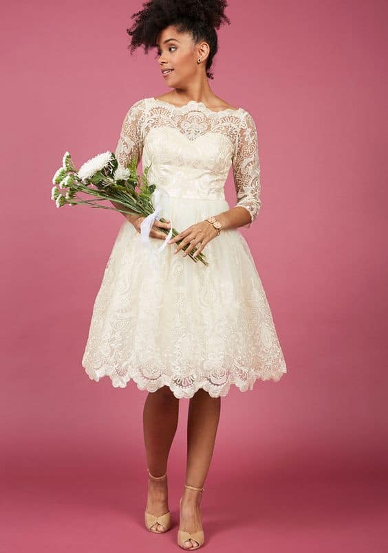 If you love vintage fashion as a modern lady, you can’t go wrong by turning that floor length gown into a tea length one. Round the bottom edges, add flirty lace or a layer of tulle over the full skirt! Cutting away the fabric on the bottom reveals those lovely legs of yours and turns your walk down the isle from serious to playful!