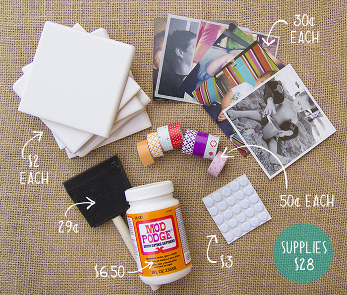 For this project you will need ceramic tiles to start out with.  You will also need small felt discs to attach to the bottom of the tile, so that your coasters don’t scratch the surface they are set on. If you can’t find blank white tiles, consider using second hand ones but painting them the color that you want. This might take a few coats of paint, so be patient! And if you can not find small felt circles with adhesive backing, simply cut your own out of felt and glue them onto the tile.