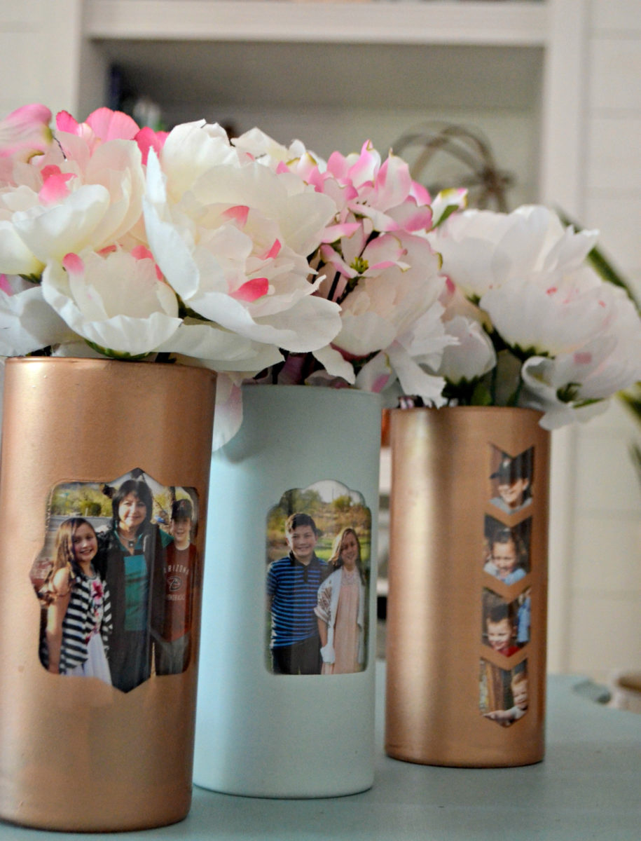 Are you looking for a crafty gift idea? You could print out photographs of you and your loved one, and create gorgeous, personalized vases with them. You can buy vases at a second hand shop, or use recycled bottles or Mason Jars. Paint the jar using spray paint, and attach the photograph with glue. If you’re giving this as a gift, fill it with fake or real flowers, first! Hope you enjoy this flower-themed DIY project!