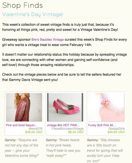 In honor of Valentine’s Day style and spreading vintage love, I’m excited to announce this fantastic giveaway sponsored by vintage seller & fashion blogger Bre’s Baubles Vintage!