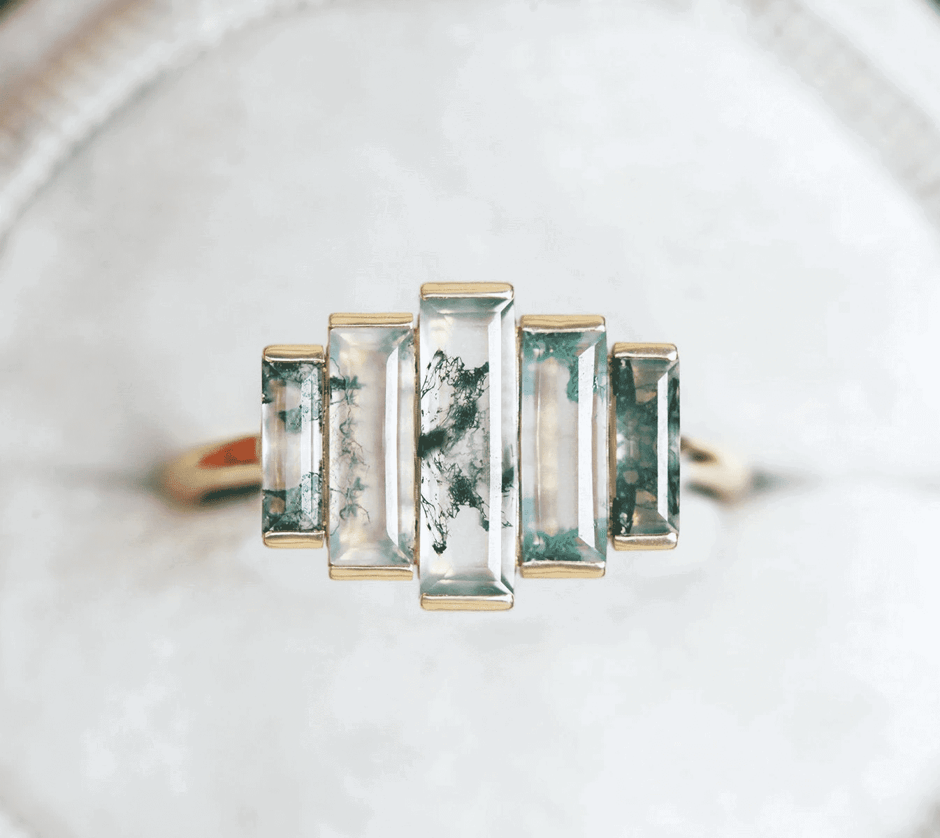 Geometric shaped rings in bold colors are for true vintage romantics that live for Art Deco aesthetics.