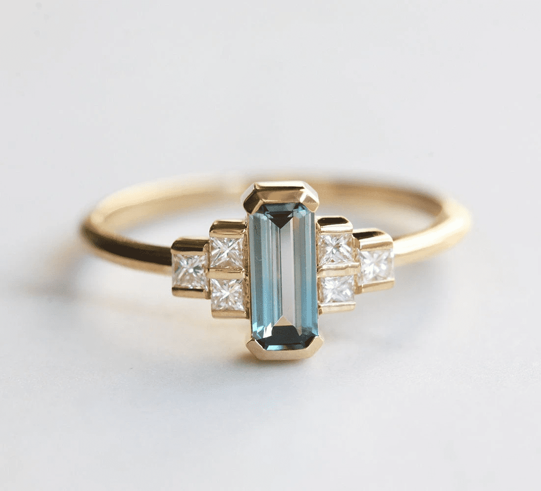 After Meghan Markle, Duchess of Sussex, appeared with an aquamarine ring on her wedding day, this stone reached a peak in its popularity. With this dazzling art deco ring you will get the best of both worlds – sleek design and beauty from an aquamarine stone that will take your breath away.
