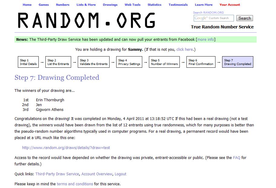 Winners Announcement: Gratefulness Giveaway Contest 4/3