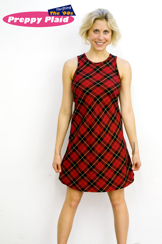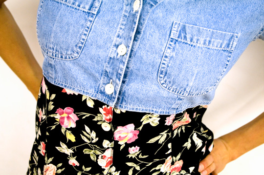 1990s fashion has a style all its own that with due time, will surely have its place in the canon of fashion history. According to industry standards vintage style is anything officially 20 years or older, so only a piece produced between 1990 and 1992 is technically vintage for 2012. So depending on your personal opinion and vantage point to the era, the ’90s is a toss-up for vintage classification. A girl who grew up in the ’90s may prefer to avoid the ’90s fashion trends of her childhood and prefer wearing ’50s, ’60s , and ’70s clothing, while a teenager today may find the styles of the ’90s vintage simply because she can’t remember ever having experienced them before. Since I grew up in this easy era and can remember most of the trends firsthand, I decided to thrift my favorite ’90s styles for a fun trip down memory lane at my hometown Salvation Army in Lancaster, Pennsylvania. To share the history of ’90s fashion trends, I combed the racks for the era’s most memorable pieces from cutesy denim overalls, printed shorts and crush-worthy velvet mini dresses to the era’s most quintessential prints like sunflowers, daisies, ditzy floral and preppy plaid.