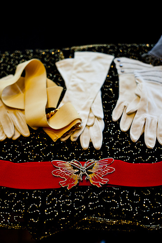 The sequin shawl, two pairs of gloves and both belts … SOLD!