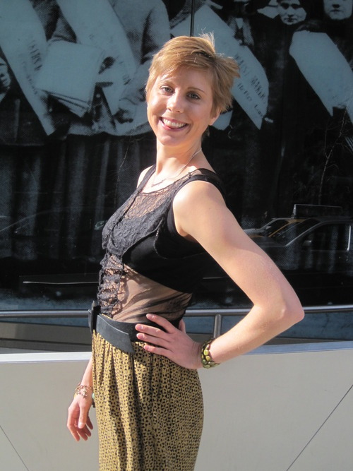 See that illustration above this picture of me at La Femme Fete? Well … that illustration IS of me and modeled from this shot of me taken by Chris Reed of Might Like You Better before the big event. Thanks, Bridget!