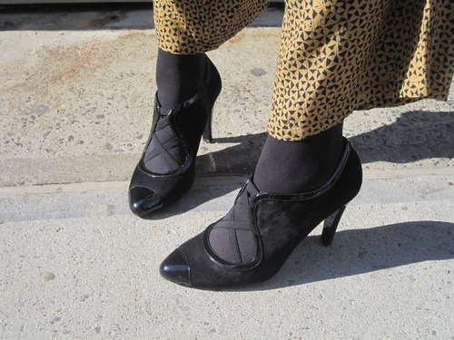 THE SHOES: New shoes [!!!] from the annual after-Christmas-after-New Year’s Day-after President’s Day-after Valentine’s Day SALE at my local “high-end” department store in Lancaster, PA: Bon-Ton. Never heard of it? I’m not surprised. TK brand, because I forget at the moment, but the shoes were 75% off the already discounted price, totaling a not-so-whooping $20. Cha-ching.