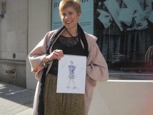 Despite being a warmer winter day [hallelujah!] I threw on the snuggie for this last shot with an illustration set to debut in my lookbook! Special thanks to friend/fellow Temple alumna Bridget McMullan for sketching. Girls got talent.