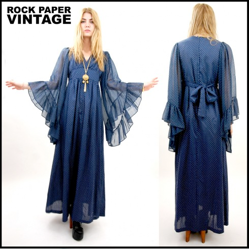FESTIVAL DRESS: Polka Dot Angel Sleeve Maxi by Rock Paper Vintage