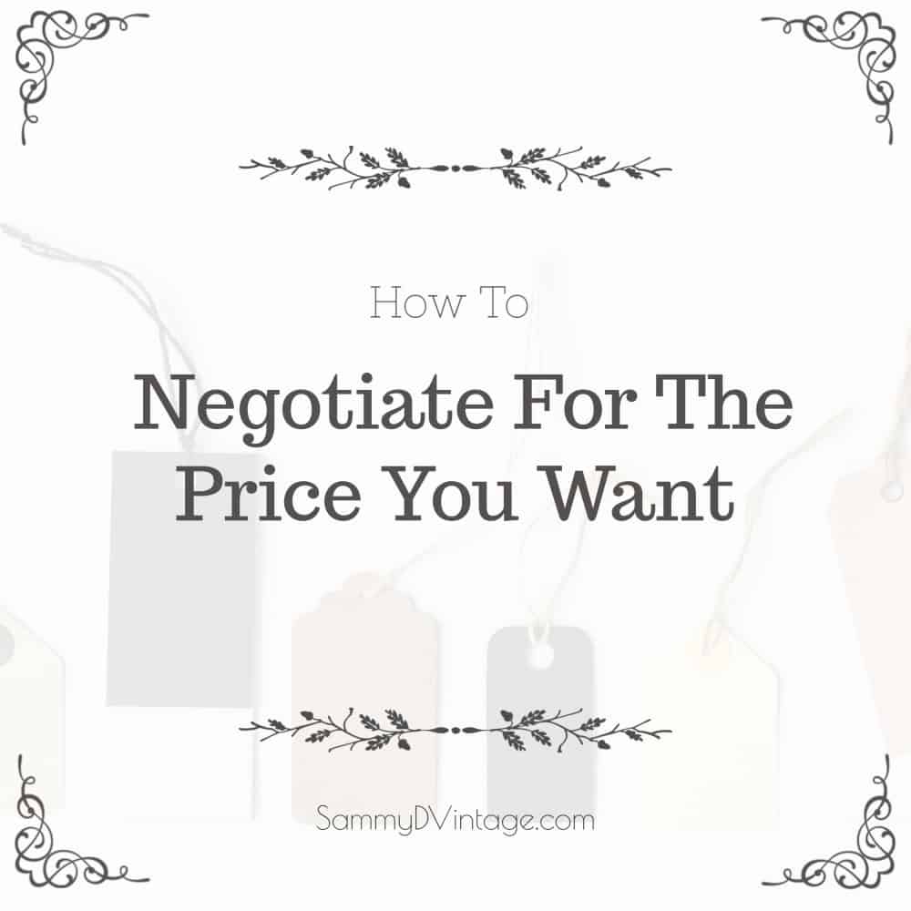 Negotiation is a powerful skill in life. Whether your angling for the last piece of cake, or a better price on a house, the skill is bound to come in handy. Don’t wait until you are facing a really high pressure situation. Start small, with your vintage finds. You’ll save money and gain a valuable talent in the mean time! Have you ever tried negotiating a price, whether at a thrift shop, tag sale, or flea market? Tell your story in the comments below!